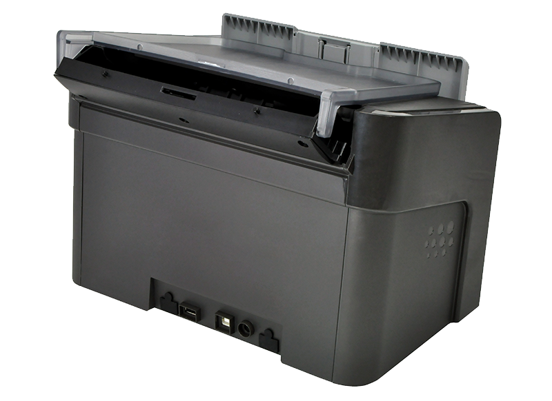 一次性可放置100頁A4標準紙的進紙器,尤如一個“吃紙巨獸”,能批量處理不同厚度、不同尺寸、不同材質(zhì)的文檔及硬卡(身份證、銀行卡或小于1.3毫米厚度的浮雕卡)。