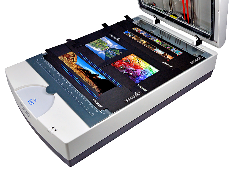 ScanMaker 1100XL配備一個TMA-III型膠片適配器,透掃范圍達12″×16″,幾乎涵蓋所有膠片種類。隨機附贈的片閘讓您方便的掃描各種不同類型的膠片:如35mm、6×9cm和4”×5”大小,甚至可以達到6×17cm全景的大小。